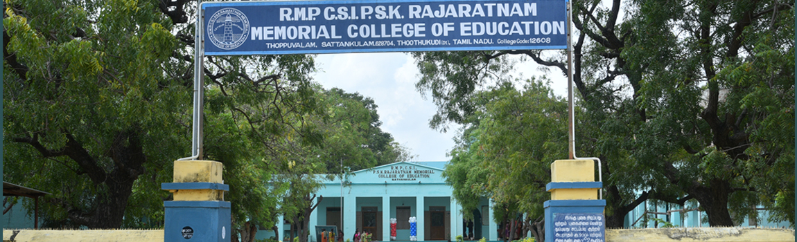 R.M.P.C.S.I.P.S.K. Rajaratnam Memorial College of Education, Sattankulam was established in the year 2006 and is being administered by the CSI Thoothukudi – Nazareth Diocesan Trust Association. It is affiliated to Tamilnadu Teachers Education University, Chennai with College Code No. 12608. It has excellent facilities and good infrastructure. It is a Co-educational Institution. The College is located in 5.5 acres in an idyllic setting amidst natural beauty on the road of “Thoppuvalam” Sattankulam (TK), Thoothukudi District. It is situated in a quiet surrounding away from hustle and bustle of the town and is conducive to studies. The course offered by this institution is Bachelor of Education Degree Programme in a regular mode for boys and girls with intake of 100 students. The duration of the B.Ed., Course is two Years.