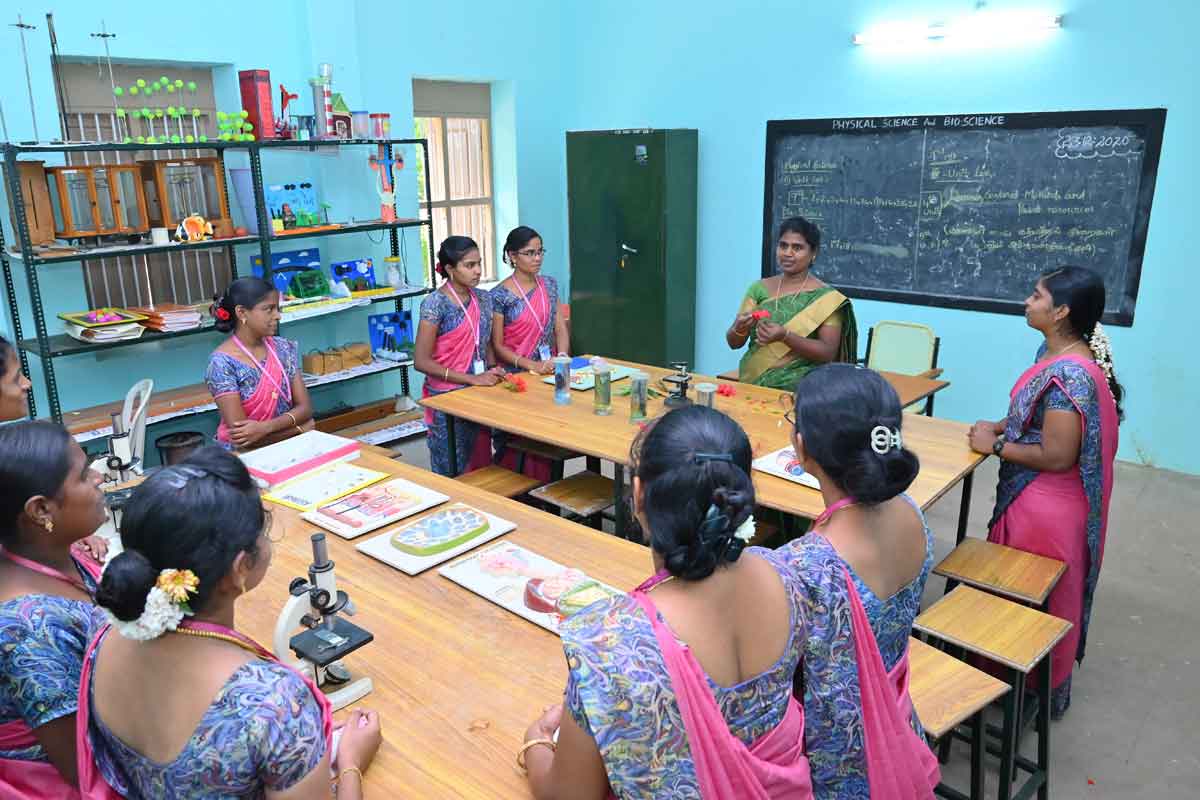 The Physical science Laboratory has enough space for 25 students doing the practical at a time. The designing of this laboratory is in a such a way the it could be useful for science teaching for middle as well as for high and higher secondary classes. It is in the area of 756 sq.ft, fully furnished. The students use the lab in a Rotation method.