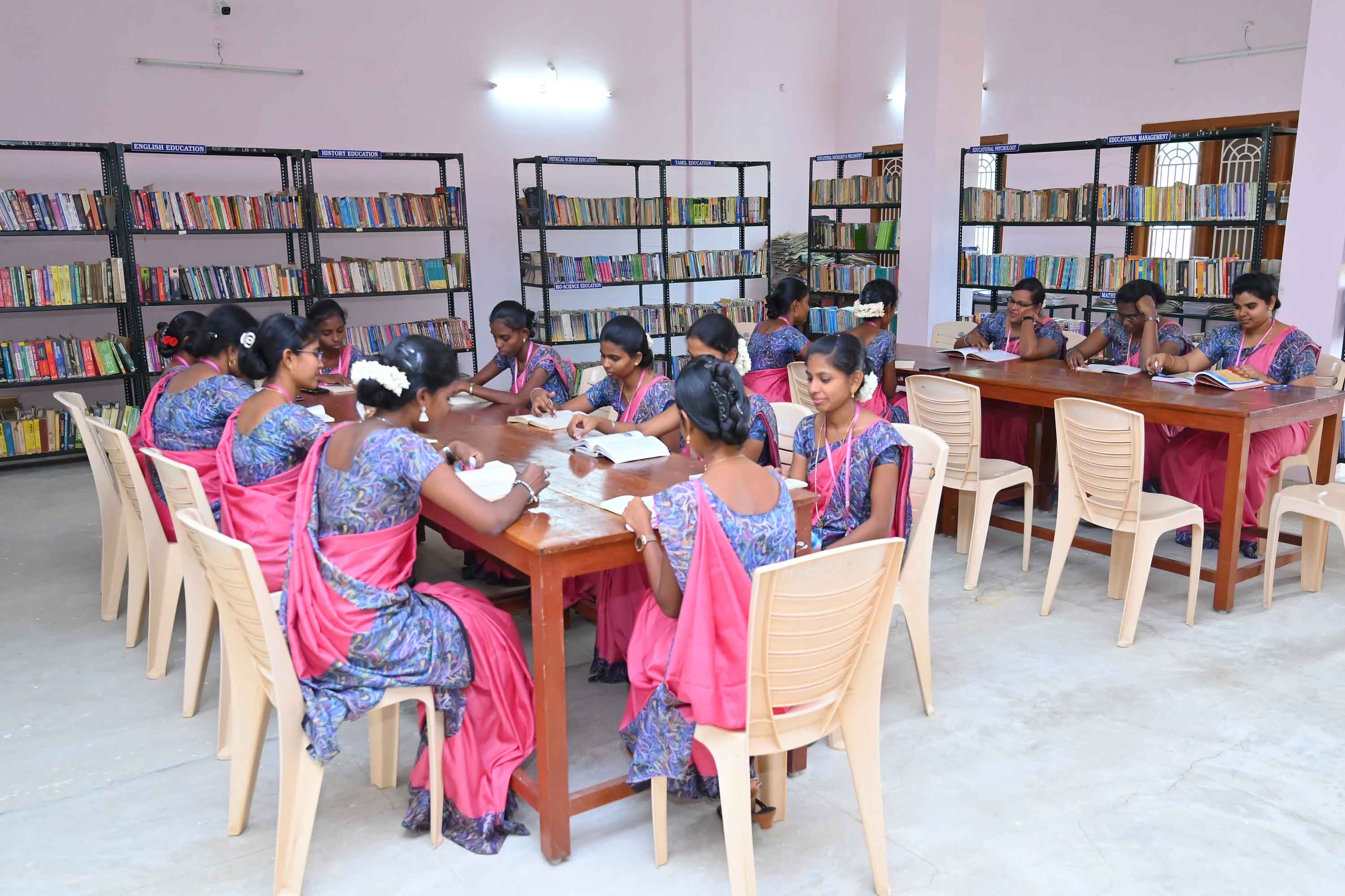 Our Library is well equipped with more than 7,000 books on all subjects. It is kept opened from 9.00 A.M to 5.00 P.M on all the working days. National and International Journals and Magazines on different subjects are available in our library. It has computers with internet facility for the use of pre-service teachers.